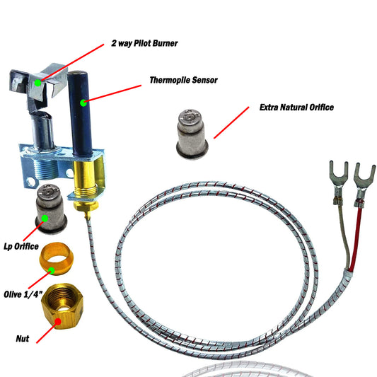 MENSI Replacement Pilot Burner Assembly for Rebertshaw 36" Leads for Natural Gas and LP (102), Compatible for Model HPC-102-36 (102 Pilot Burner Assembly NG with LP Orifice)