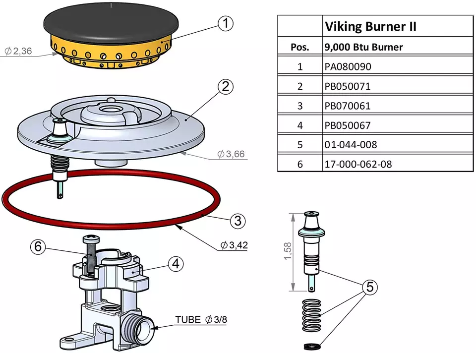 - Does Not Fit a Viking vgcc5304 bss. Fits PB040264 120000BTU Burner.