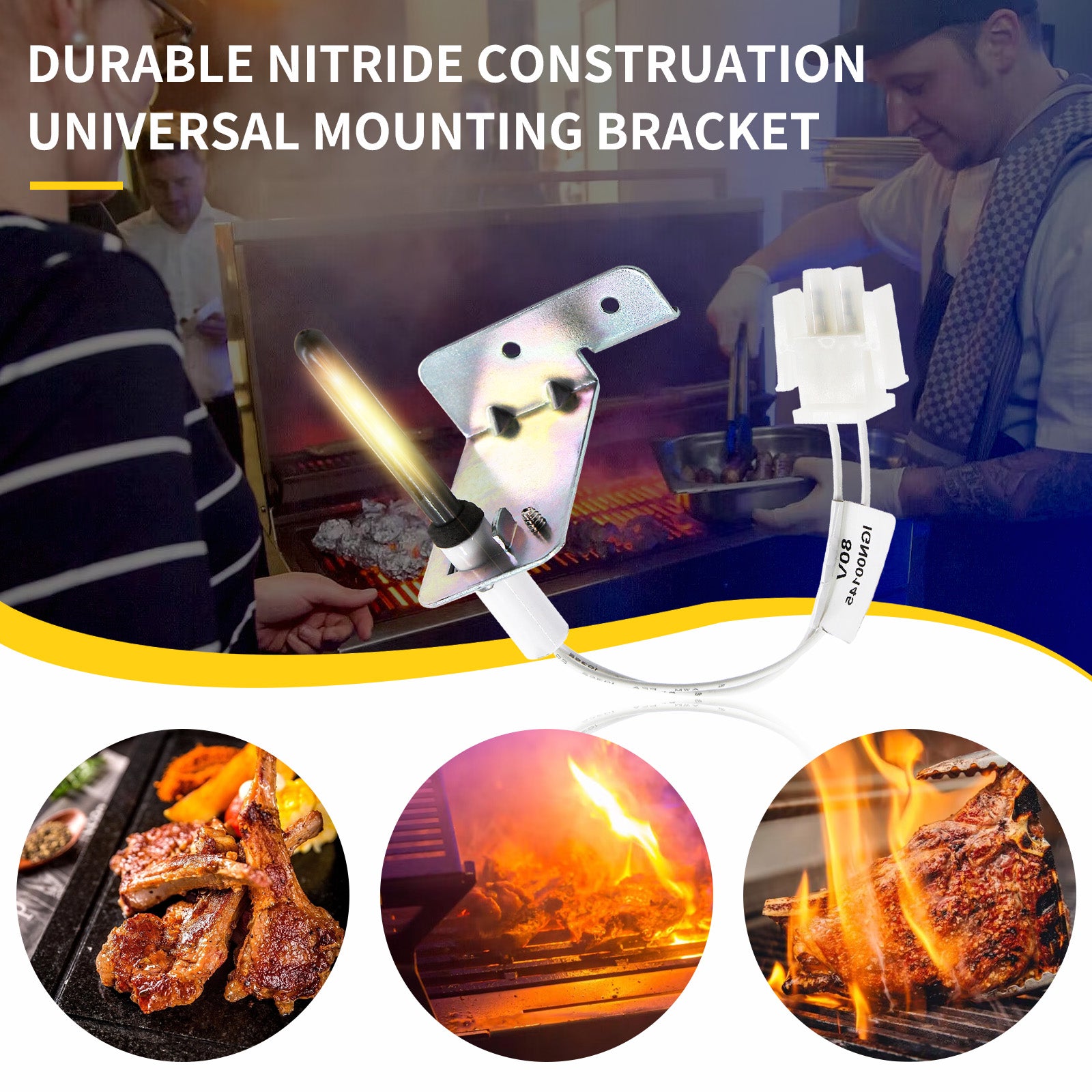 MENSI 80Volt Hot Surface Rod Ignitor with Installation Bracket and Screws Replacement of 768A 815 80V, Silicon Nitride